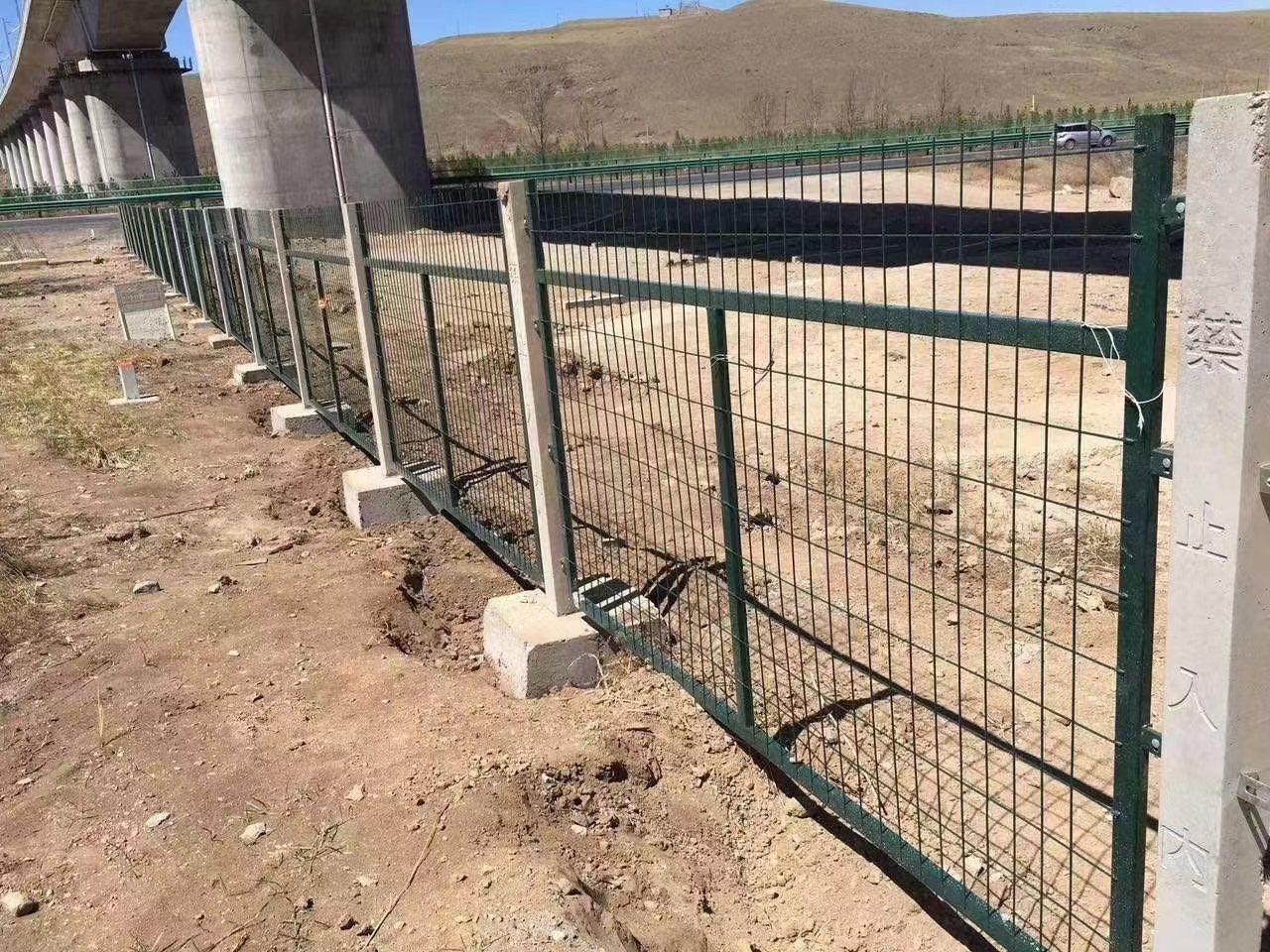 鐵路防護柵欄主要用于鐵路線路兩旁的封閉以及橋墩下的封閉,邊界的隔離防護。高速公路隔離、鐵路兩側封閉、開發(fā)區(qū)圍界、場區(qū)圍網(wǎng)等場所